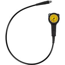 Jednostka manometr (SPG) wyświetla zarówno poziom powietrza, jak i temperaturę w jednym czytelnym wskaźniku. Prosta skala ciśnienia osiąga 5000 PSI / 350 barów. Tarcza wyświetlacza świeci, co ułatwia odczytanie wartości w słabiej oświetlonym otoczeniu. Wbudowana jest skala temperatury. Może być używana z nitroksem do 50%. Szwajcarska rurka Bourdona, odporna na wstrząsy. Jednokierunkowy zawór bezpieczeństwa. Długość węża wynosi 36 cali / 91,44 cm.