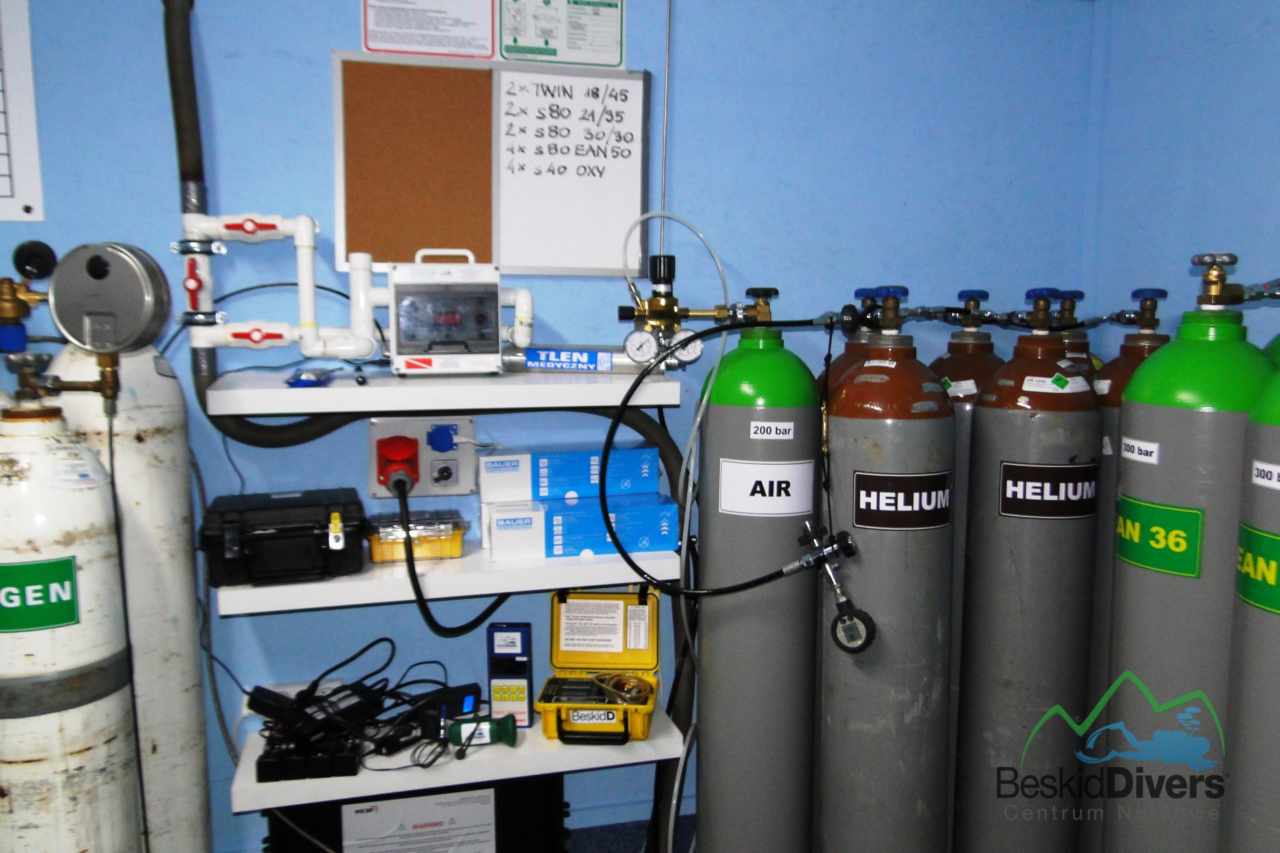 W naszym centrum nurkowym BeskidDivers posiadamy Kompresory  renomowanej firmy Bauer. Kompresory Bauer są synonimem wysokiego ciśnienia powietrza oddechowego od ponad 60 lat. Nasze kompresory są w stanie nabić 500 l / min i napełnia butle do ciśnienia maksymalnego 330 bar. Posiadamy rozbudowaną filtrację powietrza. Do mieszania nitroksów używamy odpowiednich mieszalników . Natomiast mieszaniny gazów  o zawartości tlenu powyżej 40% przygotowujemy parcjalnie. W beskidDivers https://sklepnurkowyzywiec.pl/ Kompresory są połączone  z bankiem powietrza (60 butli 50 litrów 300 bar), co daje nam bardzo szybką możliwość napełniania butli bez zbędnego czekania.Wszytko jest połaczone z tablicą do napełniania butli gdzie naraz możemy podłaczyć minimum 12 sztuk butli nurkowych.Jeśli chodzi o nurkowanie techniczne i rebratherowe posiadamy  boostery o dużej wydajności , dlatego możemy nabić butle czystym tlenem czy helem na 300 bar . Nasza spręzarkownia napełnia również inne gazy techniczne oraz do butle pcp do wiatrówek https://sklepnurkowyzywiec.pl/napelnianie-butli-pcp-i-hp-na-300-bar/